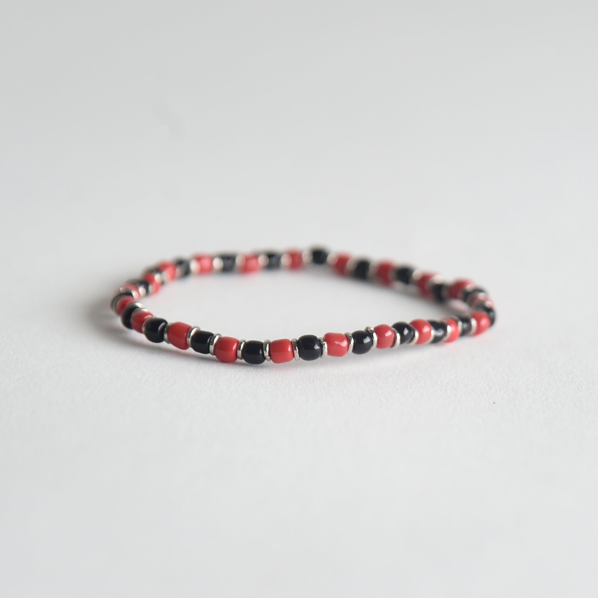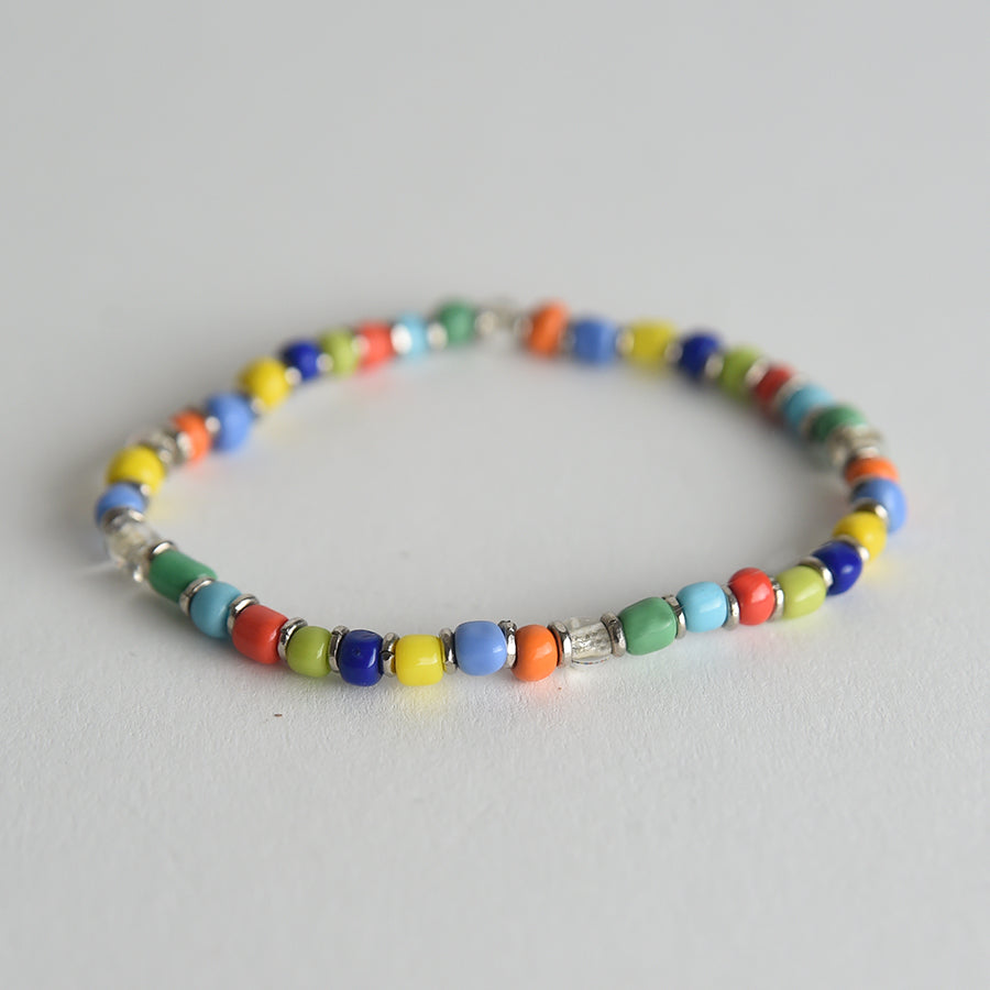 Each delicate bracelet is made with colorful glass beads that measure about 3mm and separated by silver rings, the bracelets can be worn alone or stacked together or with your favorite bracelets.