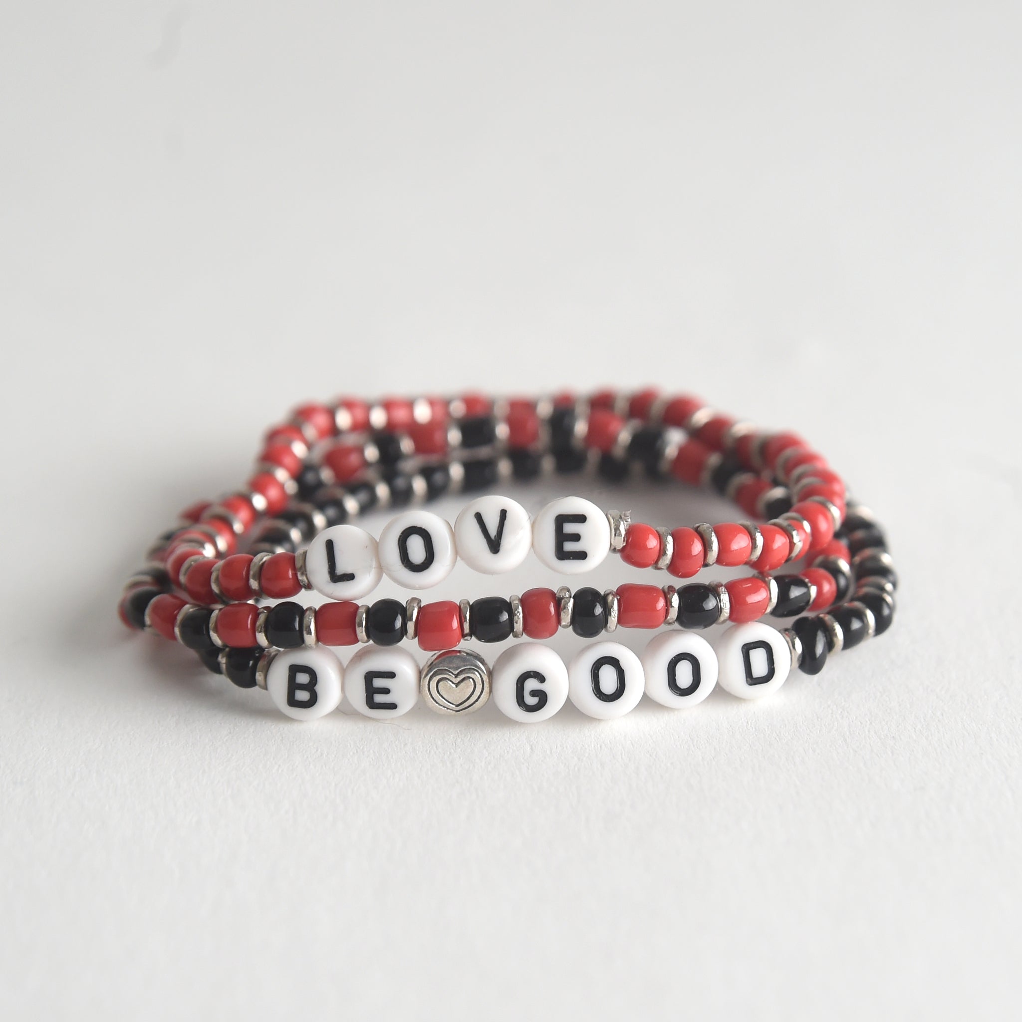 This handcrafted trio features two glass bead mantra bracelets that read Be Good and Love, paired with a coordinating all–glass bead bracelet for the perfect layered stack. Each piece is handmade by artisans in Uganda, creating a set that’s bold, joyful, and full of meaning.