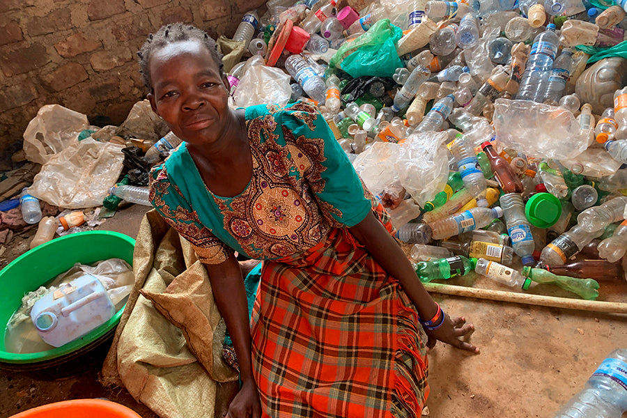 of Kampala, collecting plastic bottles to recycle. She also has returned to her agricultural roots and picks greens to sell.